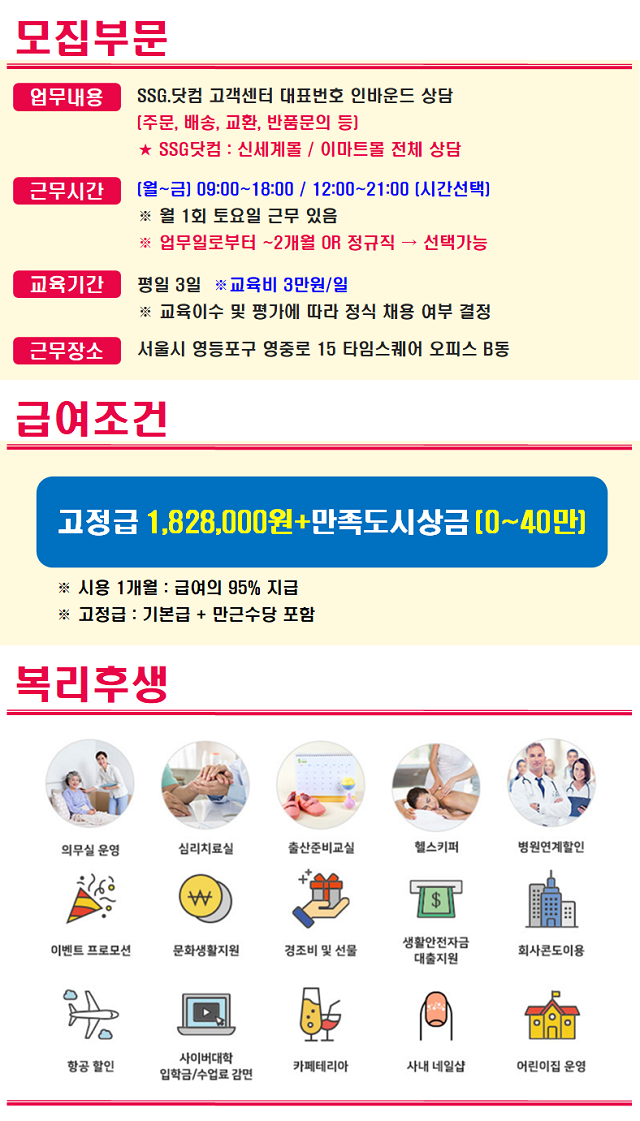 - 주 5일(월~금) 09:00~18:00/12:00~21:00 (선택)