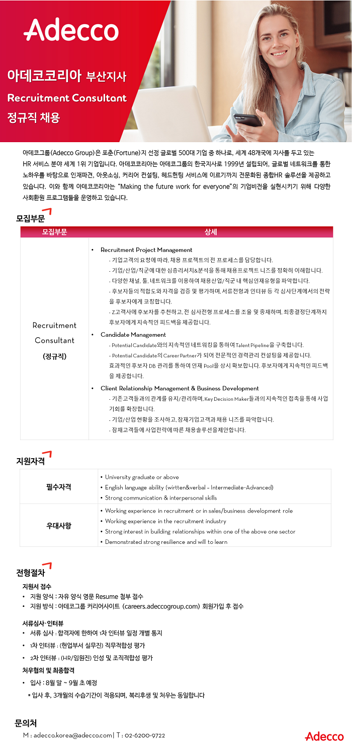 (주)아데코코리아에서 채용공고가 시작되면 이메일로 알려드립니다.