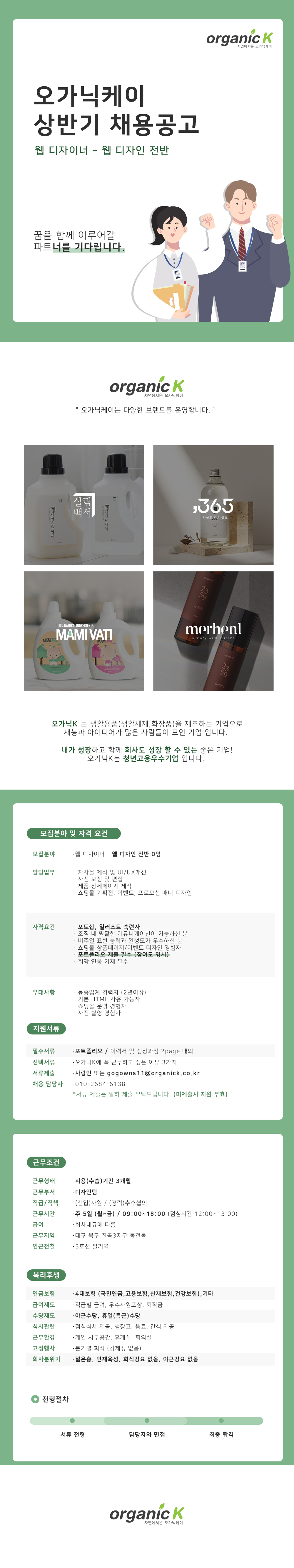 오가닉k에서 채용공고가 시작되면 이메일로 알려드립니다.