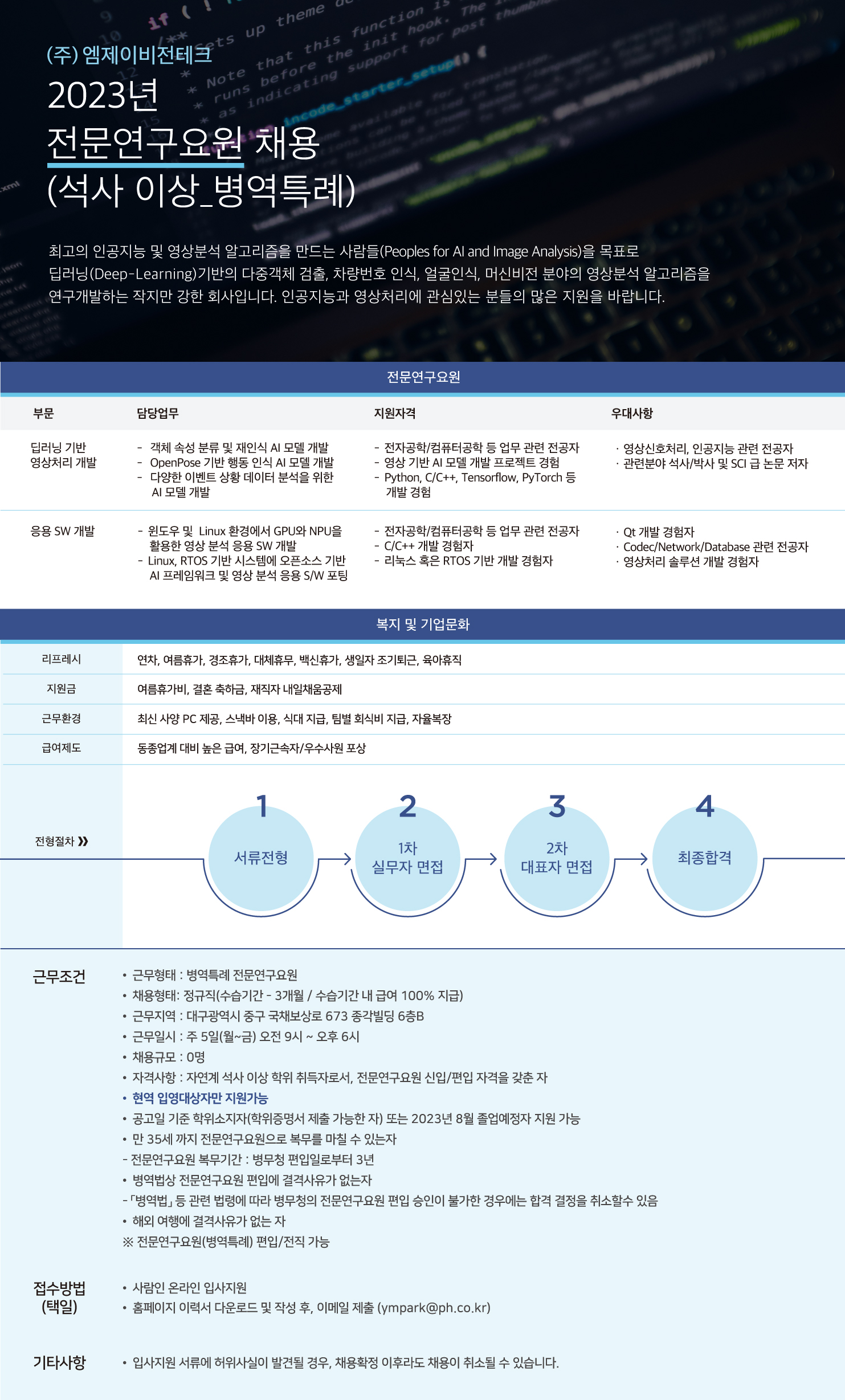 (주)엠제이비전테크에서 채용공고가 시작되면 이메일로 알려드립니다.