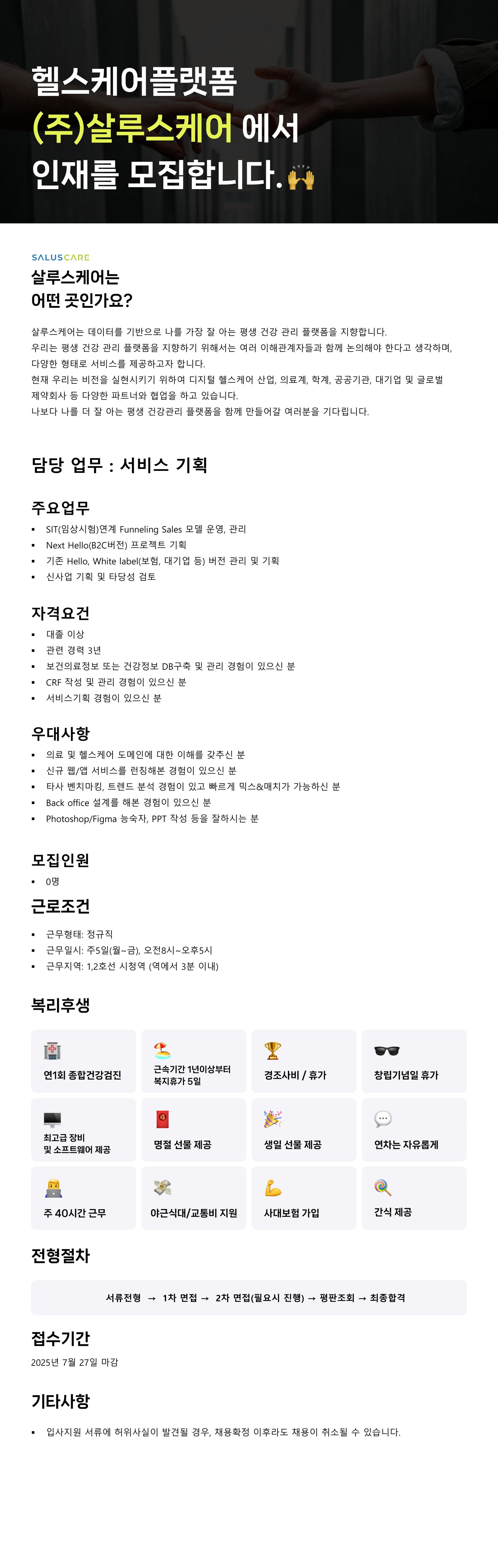 (주)살루스케어에서 채용공고가 시작되면 이메일로 알려드립니다.