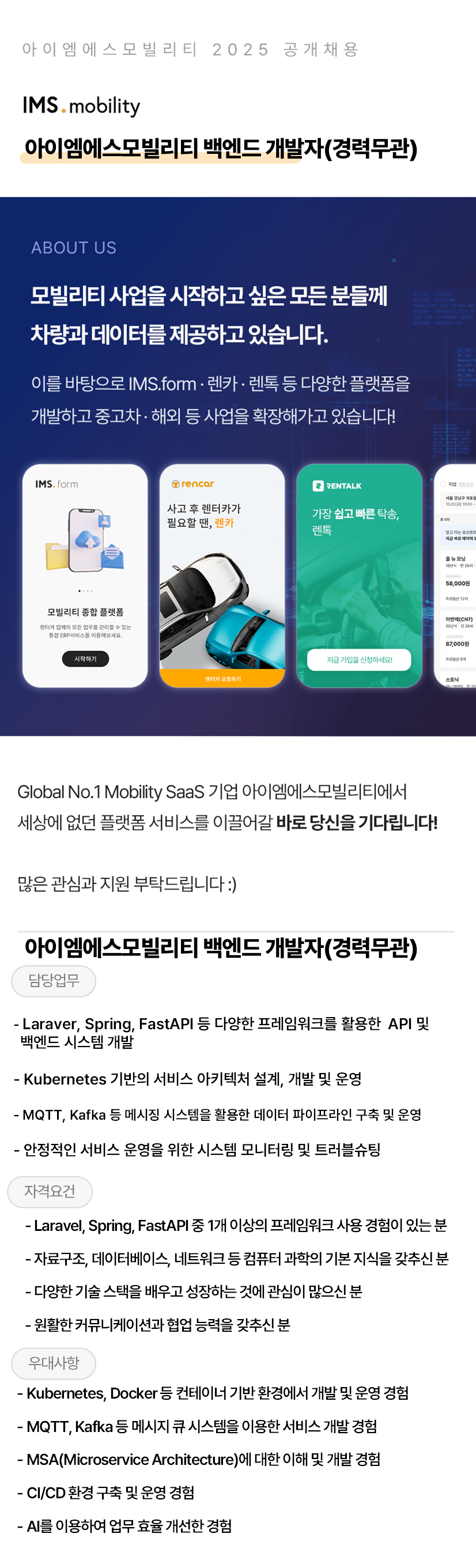 아이엠에스모빌리티(주)에서 채용공고가 시작되면 이메일로 알려드립니다.