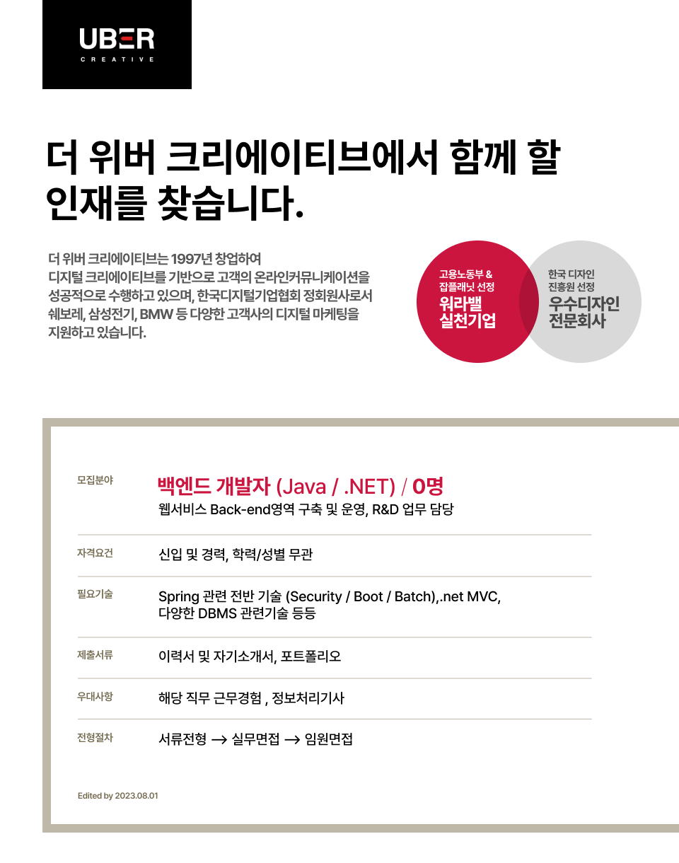 (주)더위버크리에이티브에서 채용공고가 시작되면 이메일로 알려드립니다.