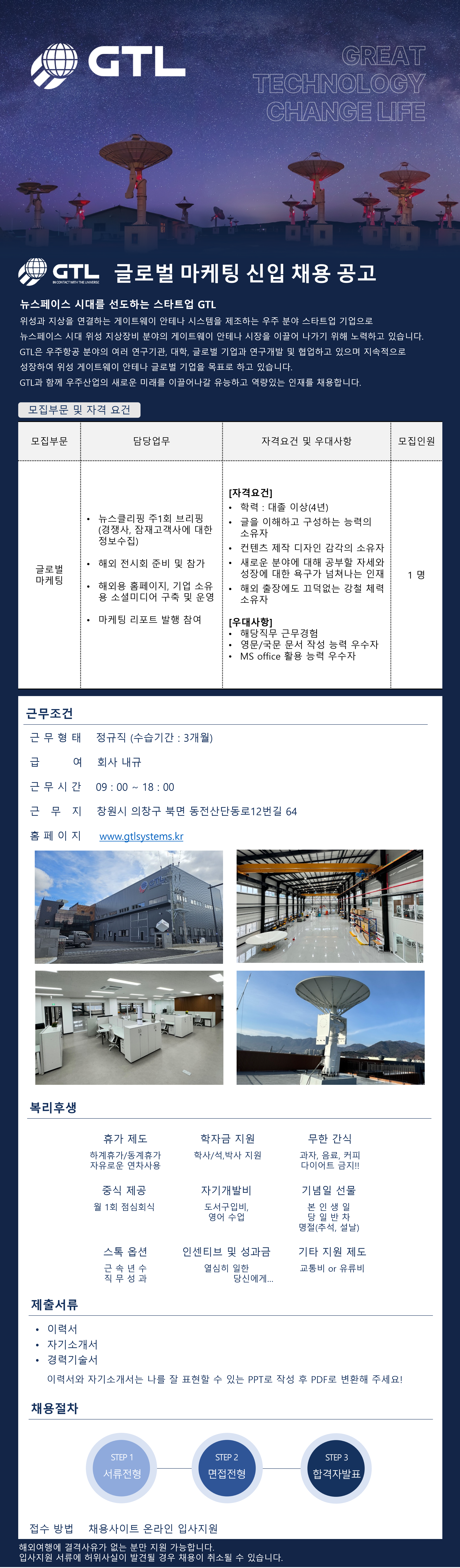 - [주식회사 지티엘] 글로벌마케팅 신입 채용