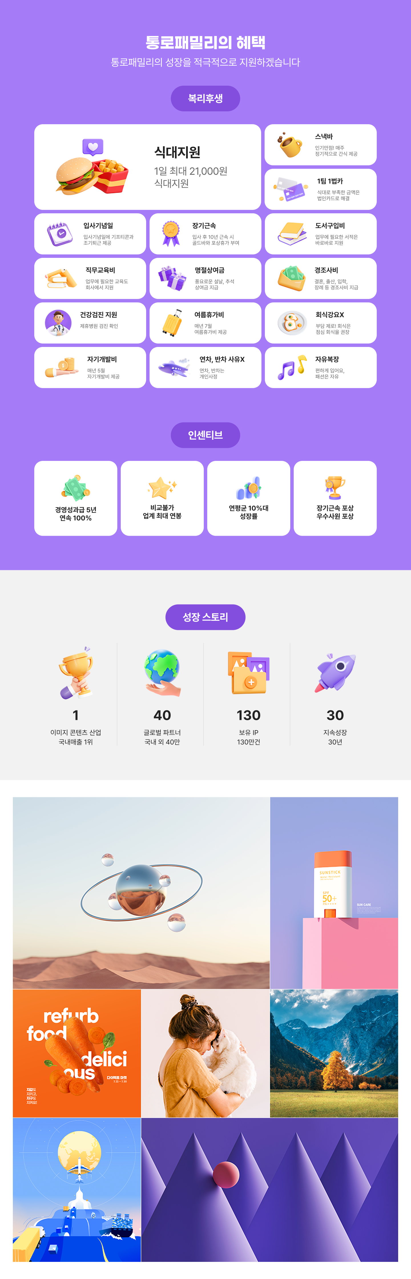| 제출서류 : 이력서(희망연봉 기재) / 경력 위주의 자기소개서 접수방법 : 홈페이지 지원 접수기간 : 2025년 10월 31일까지 (채용시 조기마감) 채용 홈페이지 : career.tongro.co.kr 서비스 사이트 - www.clipartkorea.co.kr - www.imagetoday.co.kr - www.imagekorea.co.kr |