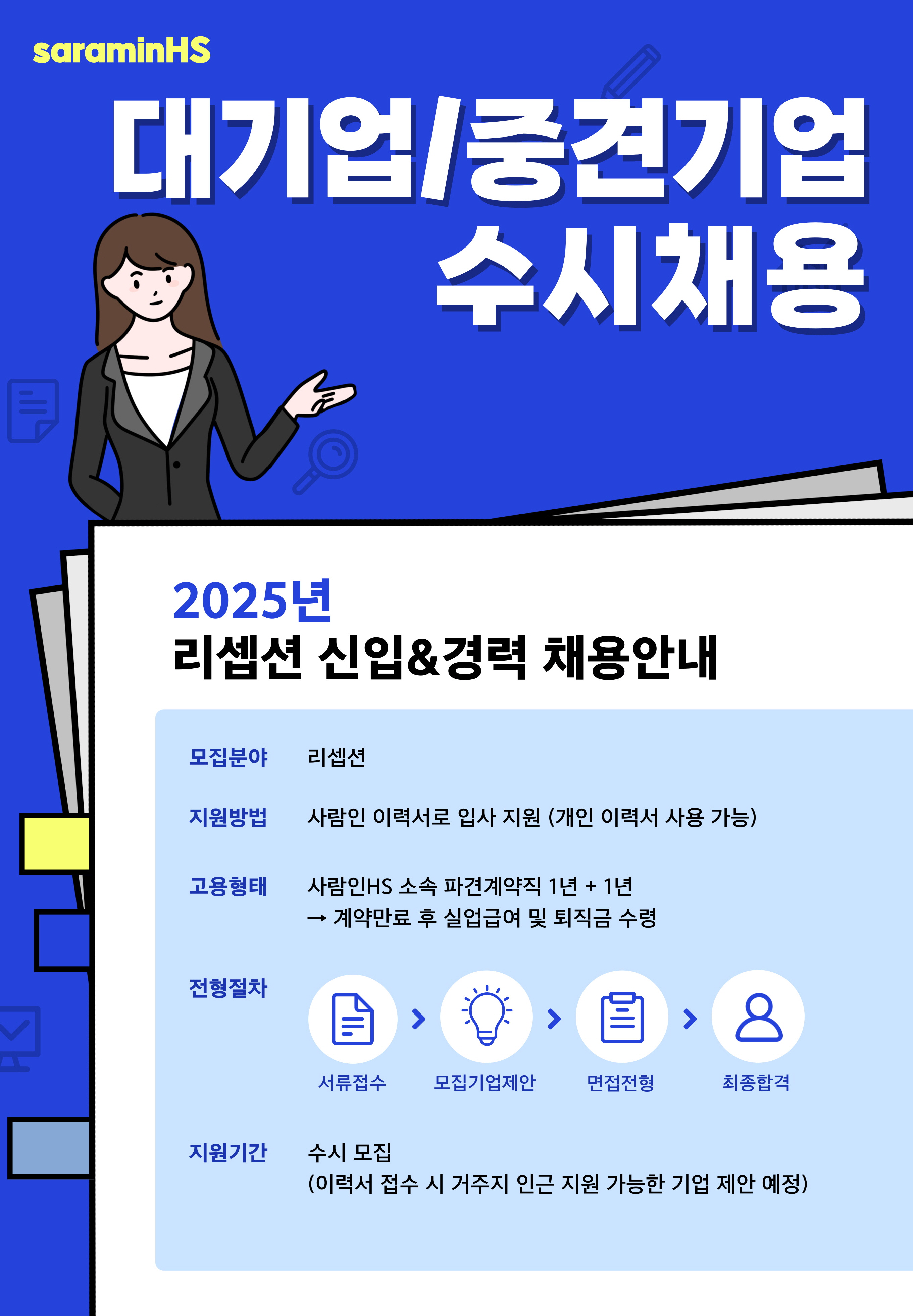 (주)사람인에이치에스 인사담당자님이 1개의 질문에 답변한 내용입니다. 25.09.24 09:48