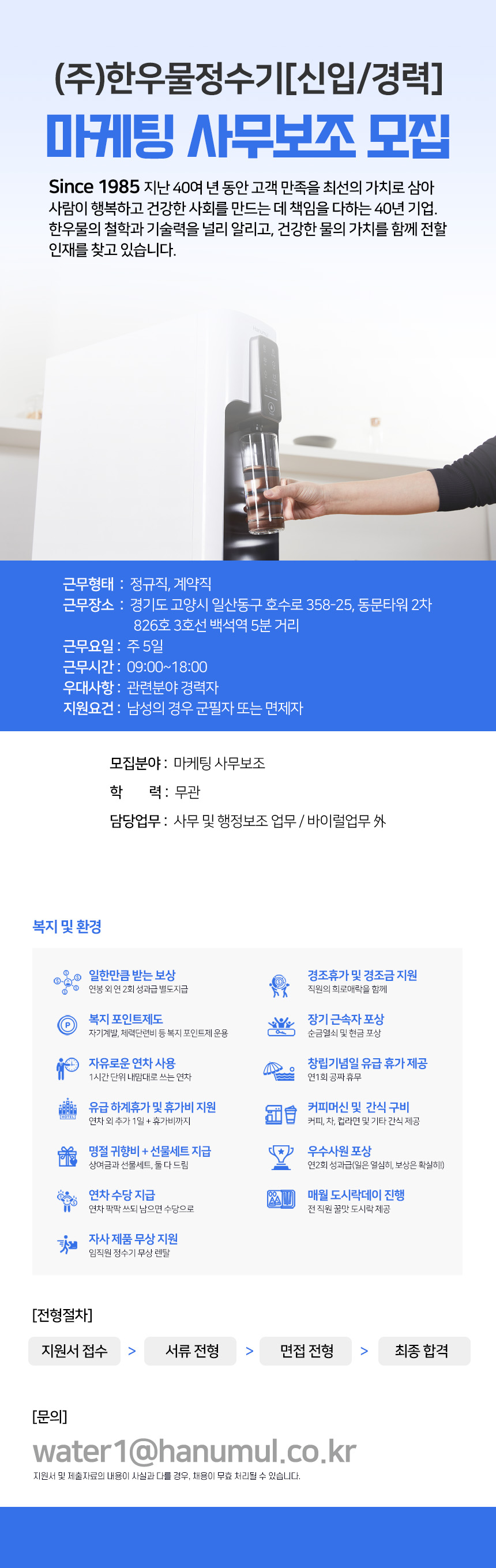 (주)한우물정수기에서 채용공고가 시작되면 이메일로 알려드립니다.