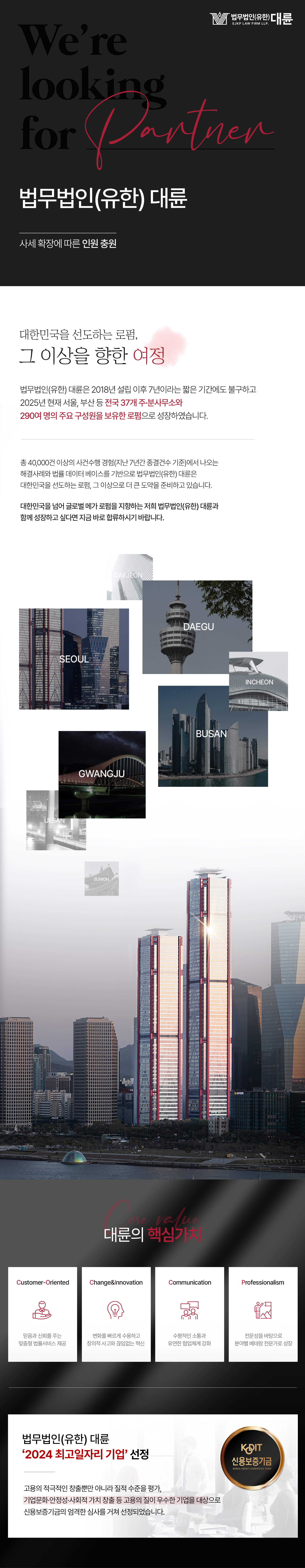 법무법인(유)대륜 인사담당자님이 4개의 질문에 답변한 내용입니다. 25.10.02 19:13