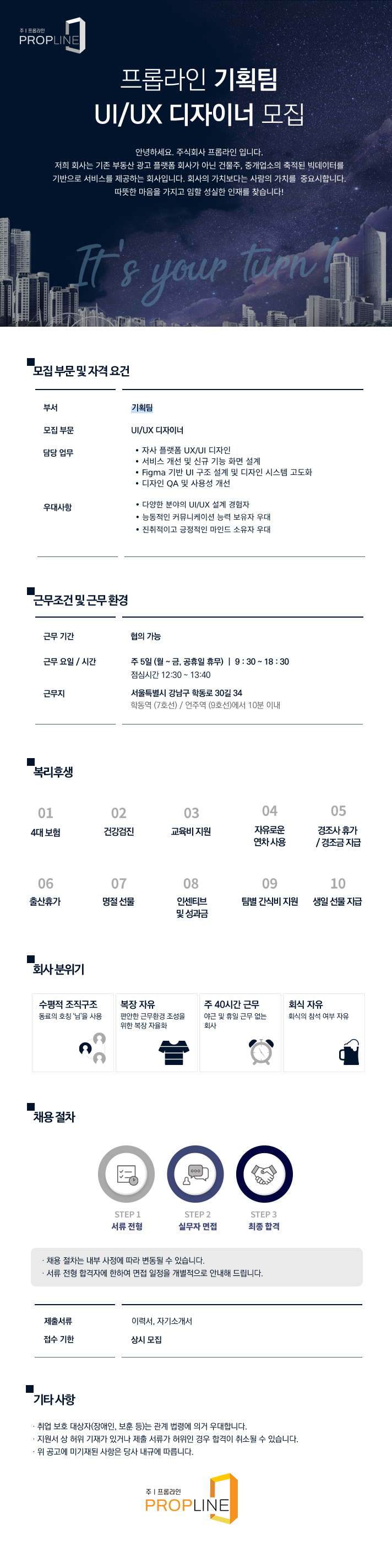 - [(주) 프롭라인] 기획팀 UX/UI 디자이너 모집