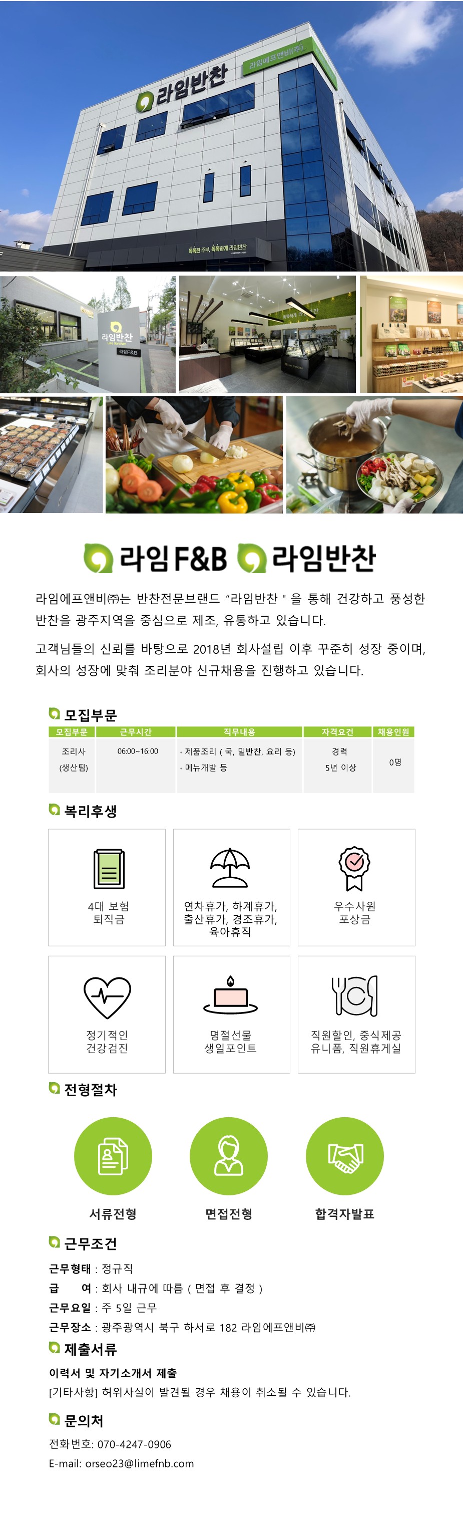 라임에프앤비(주)에서 채용공고가 시작되면 이메일로 알려드립니다.