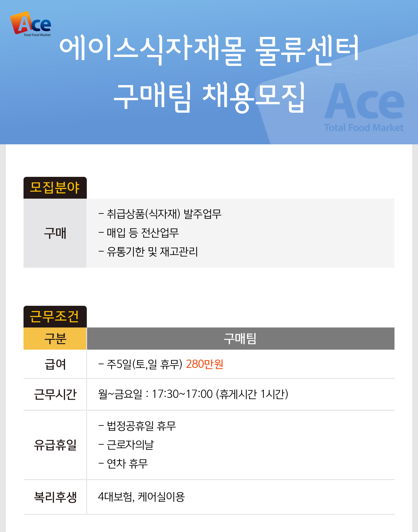 (주)에이스식자재할인마트에서 채용공고가 시작되면 이메일로 알려드립니다.