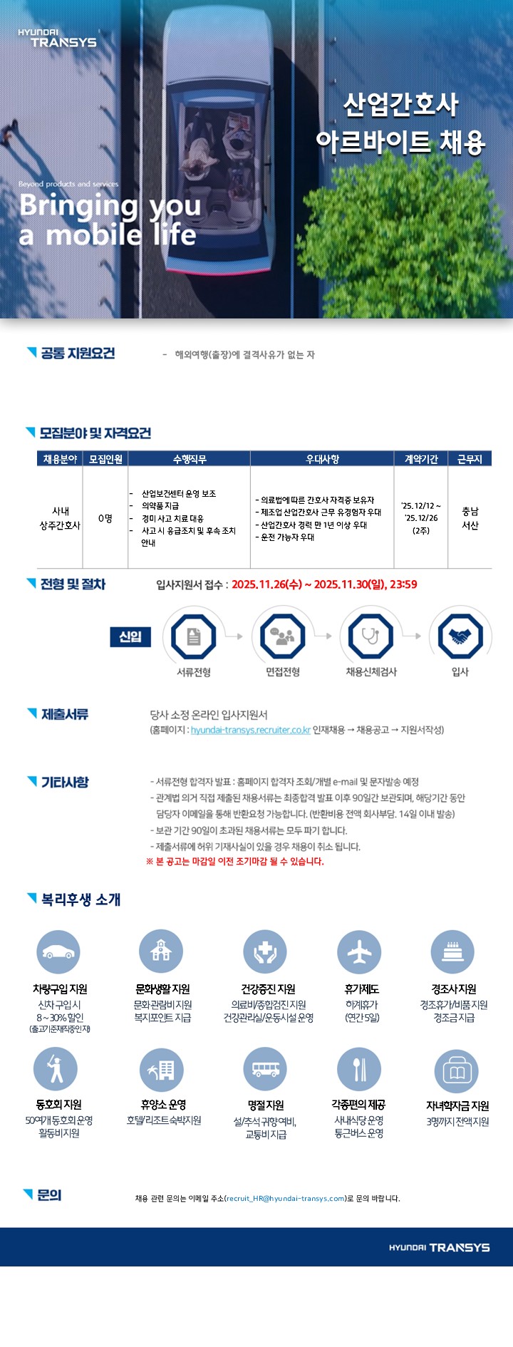 현대트랜시스(주)에서 채용공고가 시작되면 이메일로 알려드립니다.