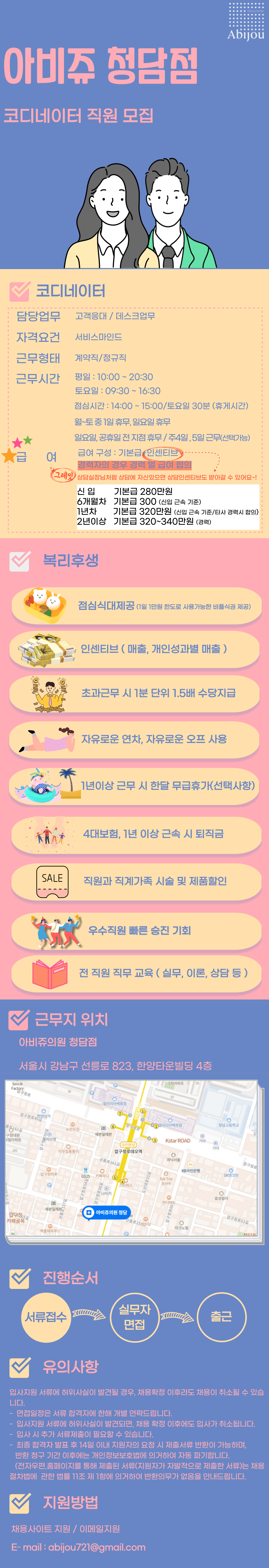 - 점심식사 제공, 간식 제공, 음료제공(차,커피)
