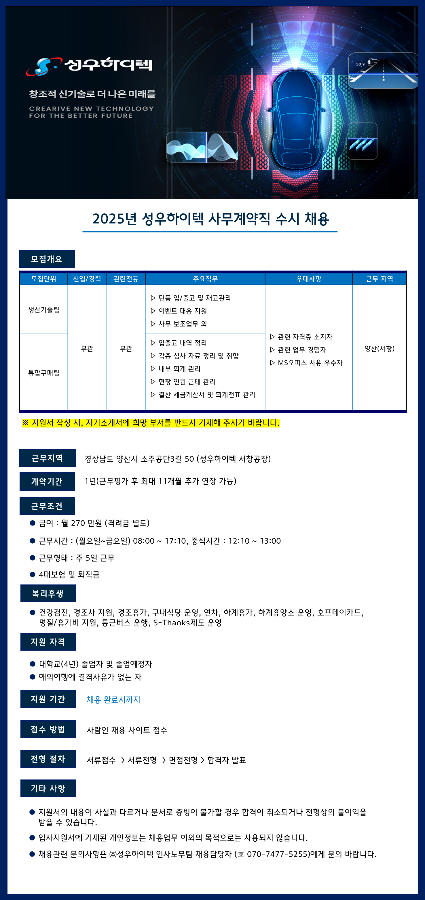 - 성우하이텍 서창공장 사무계약직 채용