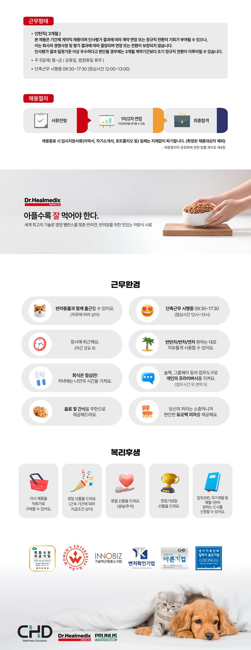 - 반려동물 제품사업 홍보 인턴 모집(정규직전환가능)