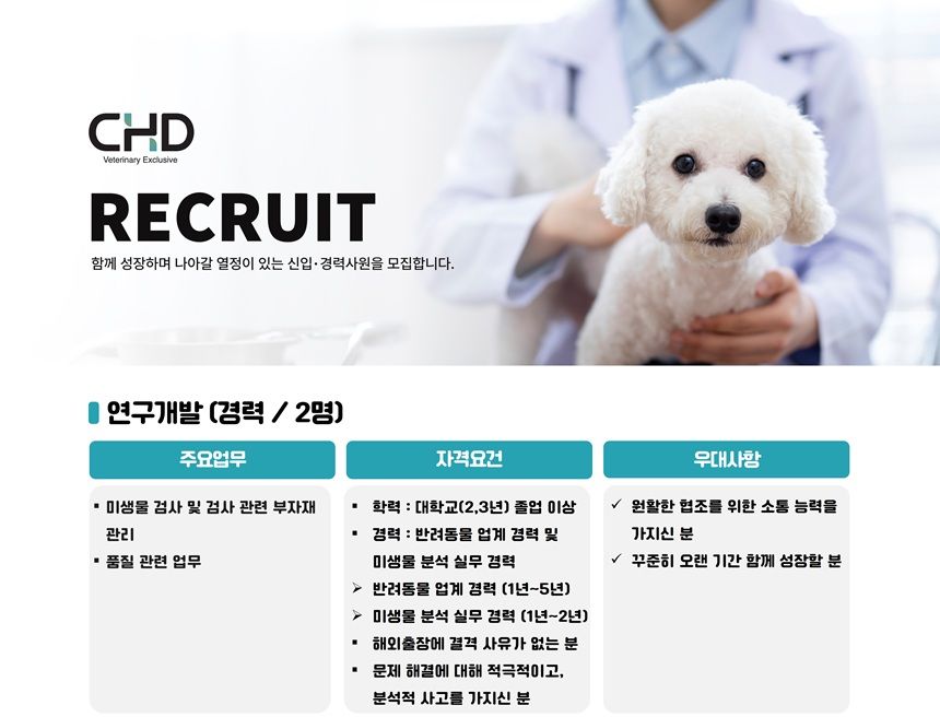 - 반려동물 제품사업 연구개발 인턴 모집(정규직전환가능)