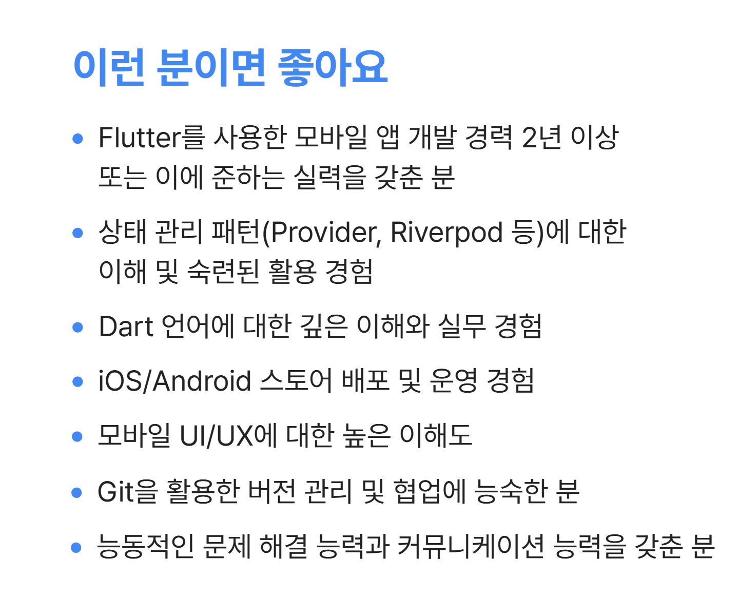 - 플러터(Flutter) 모바일앱 개발자 경력 채용